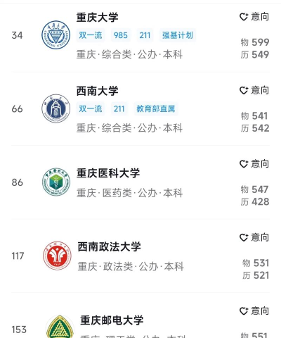根据提供的信息,以下是2024年重庆学校王牌专业的排名情况: