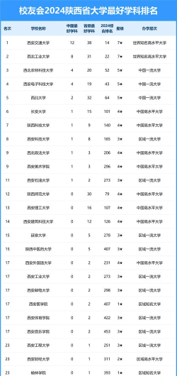 根据2024年软科中国大学专业排名的信息,陕西高校在专业等级方面的排名情况如下: