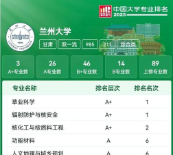 请注意,这些信息是基于2023年12月发布的数据,排名可能会随着时间和不同评价机构的更新而有所变化。如果您需要最新的排名信息,建议访问兰州大学的官方网站或相关教育部门发布的最新公告