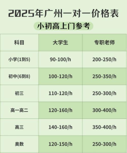 一对一家教价格(此收费标准为一对一行情价格,供参考):