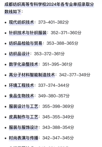 根据提供的信息,以下是2024年中国纺织专业高职院校的排名情况: