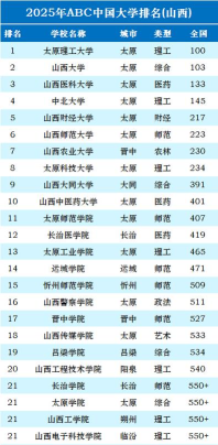 2025年山西太原专业排名