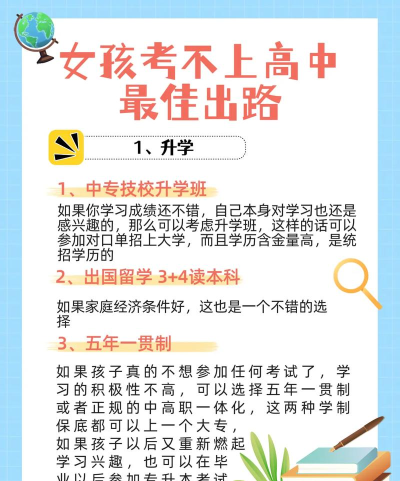 对上大学没有很大要求,对学历没那么在乎:学手艺吧,现在高级蓝领其实很吃香,但对女孩子来说,能学的其实不多(能学指的是能坚持能抗住)。