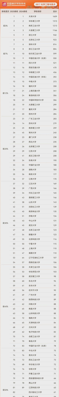 当前材料类专业全国排名情况如下: