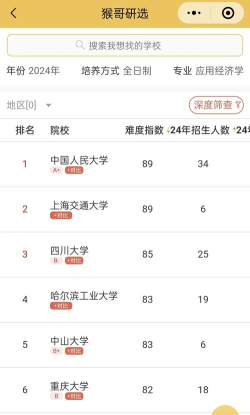 根据提供的信息,以下是2024年经济学专业硕士排名的部分信息: