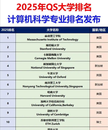 计算机科学专业排名