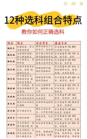 从专业角度看,物理+化学+生物组合是最佳组合,因为所有理工科专业和绝大多数文史类专业,都可以选择,基本上不存在专业受限的情况。