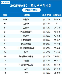 请注意,这些排名可能会随着时间和不同评价机构的更新而有所变化。建议参考最新的排名信息或直接咨询内蒙古大学以获得最准确的数据