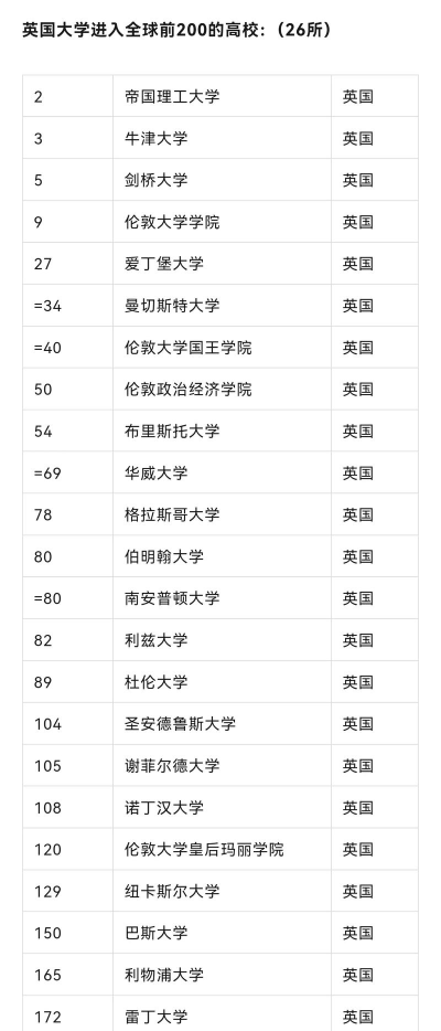 加拿大:多伦多大学、英属哥伦比亚大学、麦吉尔大学等在前十名之内。