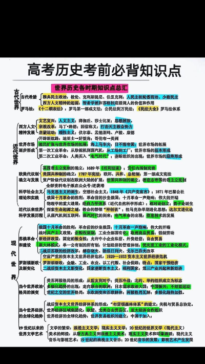 高中历史中,必背知识点有很多,学生们必须掌握,那么高考历史必背知识点有哪些?