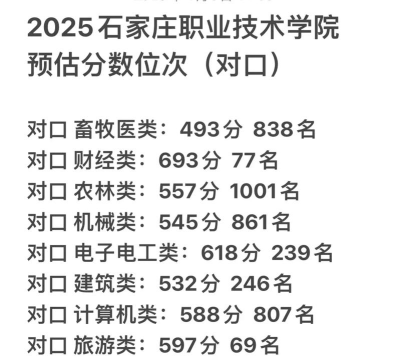 根据提供的信息,以下是石家庄专科学校的排名情况: