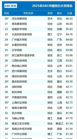 根据提供的信息,以下是部分中国民办专业大学排名的信息: