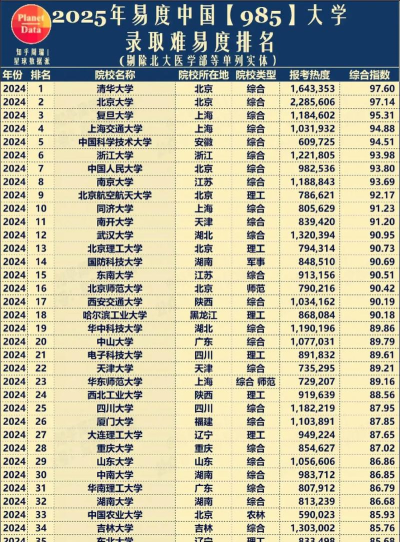 考研难度通常根据高校的综合实力、地理位置、录取分数线、招生名额和竞争比例等因素综合评定。以下是根据提供的信息整理的985大学考研难度排名概览: