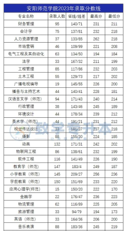 安阳师范学院2023年河南省专升本录取情况(部分专业)
