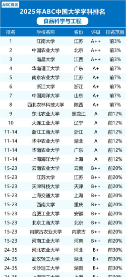 当前食品科学与工程学科的世界排名中,中国高校表现突出,以下是部分中国食品科学与工程学科的世界排名情况: