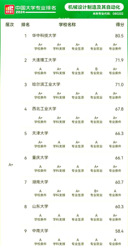 国家级一流本科专业的机械设计制造及其自动化专业大学
