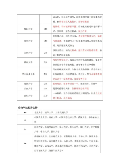 根据最新的信息,以下是生物研究生院校专业的排名情况: