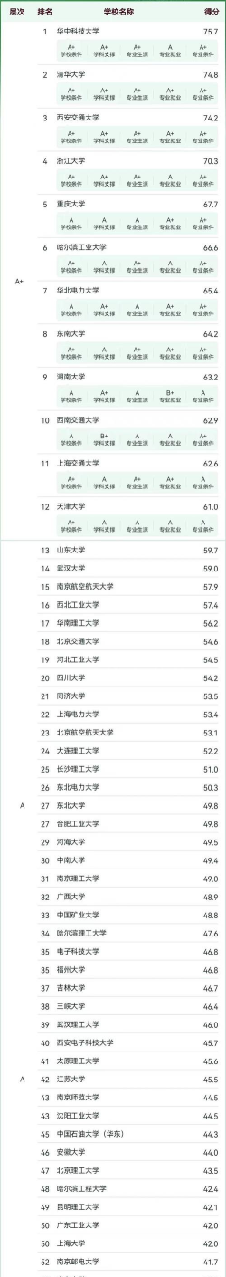 根据提供的信息,以下是2024年中国电力专业王牌大学的排名情况: