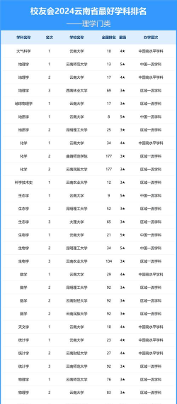 请注意,以上排名来源于网络,仅供参考。具体的排名可能会根据不同的评价标准和来源有所变化。建议直接咨询云南大学或访问其官方网站获取最准确的信息