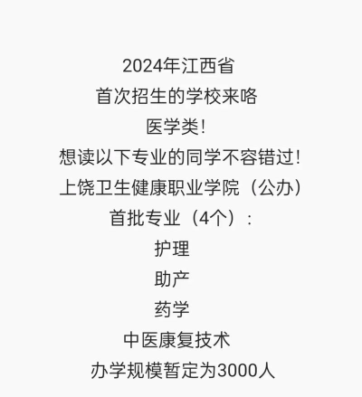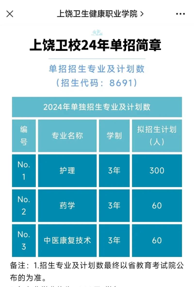 根据提供的信息,以下是2024年上饶排名前三的护理专业学校及其专业设置: