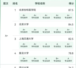 排名靠前的院校包括北京协和医学院、北京大学、上海交通大学。