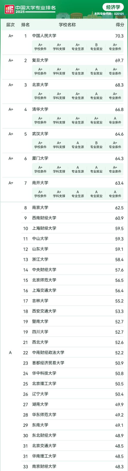 根据最近的信息,以下是2023年中国985工程大学经济学专业的排名情况: