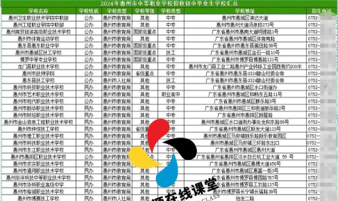 根据提供的信息,以下是2024年惠州中专高职学校的排名情况: