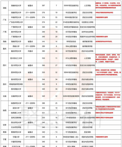 历史学专业排名(部分)
