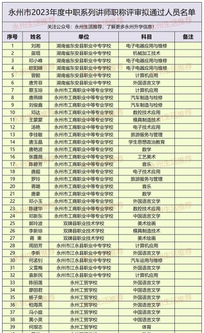 根据提供的信息,以下是2023年永州职业中等专业学校排名情况: