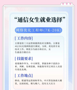 通信工程专业的女生也有广泛的职业选择,包括无线信号优化、网络规划与设计等岗位。