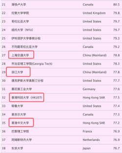 以上排名基于不同排名机构的数据,可能会有所变动。排名通常会考虑教学、研究质量、研究环境、国际展望与产业等多个方面。