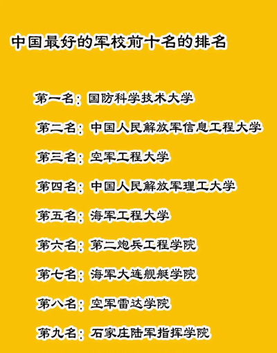 特点:在军校中具有重要地位,拥有强大的科研实力和优秀的师资力量。