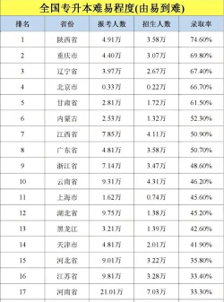 根据提供的信息,以下是专升本难度省份排名的概览:
