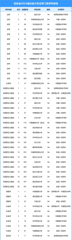 根据提供的信息,以下是湖北省研究型大学一流专业的排名情况: