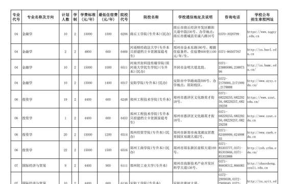 学院开设有普通大专、普通中专、五年一贯制初中起点大专和3+2大专四个层次各类专业40个,其中,毛皮与制革工艺、皮鞋设计与制造、电子环境保护与监测、工艺美术四个专业被国家教育部确定为轻工行业中等职业教育重点发展专业。2004年以来,装饰艺术设计、皮革工艺与制品专业被省教育厅认定为河南省中等职业教育重点专业。学校开辟了应届毕业生对口升学、专升本等继续学习的途径。