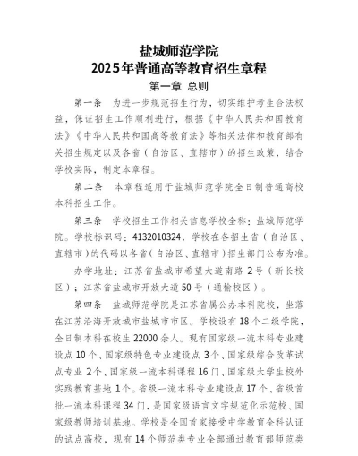 盐城师范学院2025年招生计划