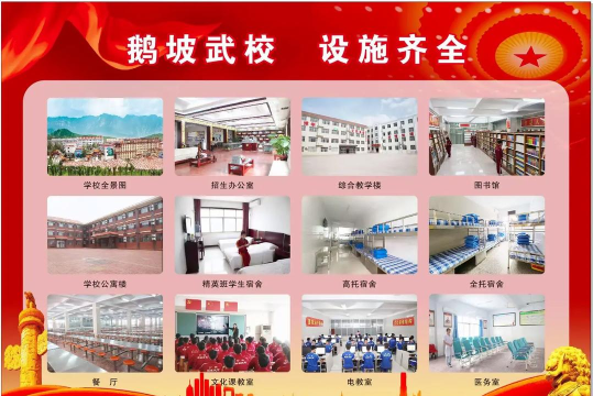 鹅坡武校创办于1977年,是经教育体育部门批准,集文化教学、武术训练、体育竞赛、影视表演于一体的现代化综合性武术学校,是改革开放初期便成立的一所专业性武术学校,也是一所经河南省教育、公安、外事、体育部门联合批准的国际武术留学生学校,涵盖学前、小学、初中、中专阶段教育,2011年起与河南大学联办大专学历教育。武术课开设套路、散打、摔跤、跆拳道、影视表演等专业。学校占地面积50万平方米,建筑面积9万平方米,训练场地15万平方米。学校布局合理,设施齐全,环境优雅,特色鲜明,管理队伍精良,师资力量雄厚。现有在校生12000余名,每年来校习武的外籍留学生近千名。