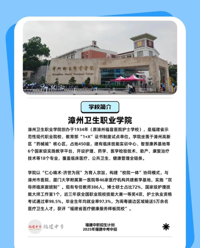 助产士等培训班,1978年开设西医、中医医疗大专班,1997年开设乡镇大专班,1999年与福建医大、福建中医学院联合开办临床医学、中西医临床医学高职班。学校始终重视抓教学质量,制订一系列教学管理规章制度,加强课堂教学监督与实践技能训练,努力培训实用型卫技人才,连续几年参加全省大专统考,成绩名列前矛。