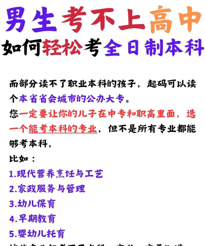 此外还有自考、成考、网教和电大等这种国民教育,这几种教育没有什么限制,很适合不参加高考的考生,没有年龄上的限制。