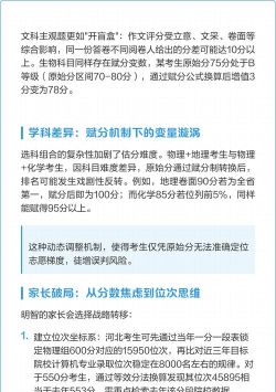 为了准确,考生可以估3次分:第一次:估计最少能得的分数,假设遇到最苛刻的阅卷老师,模棱两可的题他全不给你分,要点没答全也不给你分,要估算这种情况下可能得的分数,这是最低不能少于的分;第二次:乐观的估计,与第一次相反,估出能得的分数;第三次:均衡考虑,不仅要自己估分,还要听取老师的意见,按照学校统一的标准估分,这样就可以避免自我认知跑偏。最后,可以计算这3次估分的平均分,作为考试成绩出来之前,了解专业和院校、准备填报志愿的一个依据。