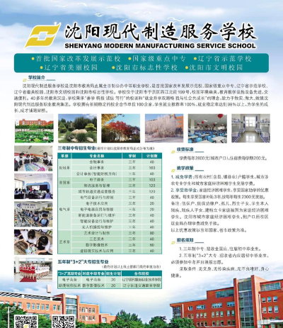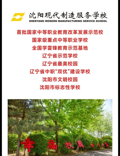 学校崇山校区位于沈阳市皇姑区崇山中路38号,占地面积2.6万平方米,建筑面积2.3万平方米,拥有4042.7平方米的国内一流的金融、会计、商贸等经济类专业实训中心。造化校区位于沈阳市于洪区西江北街199号,占地面积17.2万平方米,建筑面积8.3万平方米。园区有百余种、万余株花木,草坪面积35100平方米,总绿化面积70680平方米,湖泊2200平方米。采用地源热泵和中水处理技术,建筑物内采用中央空调制冷和供暖。正在建设全国一流的商贸、物流、电工电子电器通讯网络、轨道交通、工艺美术实训基地,设备总值超过3000万元。有设施设备先进的图书馆、博物馆、档案馆、体育场和体育馆,有学生文化活动中心、餐饮中心、生活服务中心、学生公寓,为师生提供了卓越舒适的学习生活环境;建有数字化校园网络、现代化信息中心、广播电视中心,配有计算机2000台。