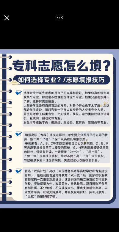 专科填志愿的时候,可以选择含有专科专业的本科院校、国家重点建设的高职院校、行业型高等专科院校等,这样在未来专升本的时候会更有优势,即便不参加专升本,就业时也更有认可度。