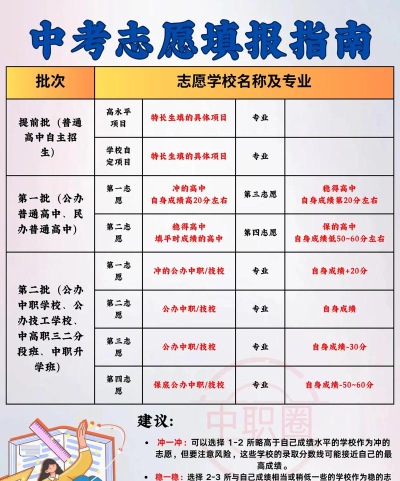 专科的志愿选择,更突出“实用性”和“差异性”,要避免与本科优势专业的冲突。专科志愿填报比本科简单很多,一般而言,即使考生分数比较低,如果没有太高的要求,基本都会被专科院校录取。所以,在分数许可的前提下,应当尽可能考虑自己的兴趣、特长和职业发展趋势。