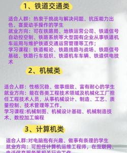 铁路学校开设的专业是非常多的,基本包含了铁路工作的各个方面。动车车辆专业出来的学生可以从事国家或地方铁路、铁路工程局、电力机车保养、甚至乘务等行业,另外铁路信号也是一个非常吃香的专业。