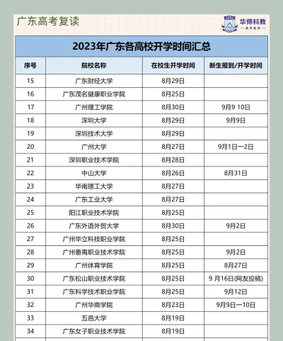 广东大一新生报到时间一般是在八月末九月初。每个学校开学的时间不是统一的,有的早有的晚,具体以学校通知为准。