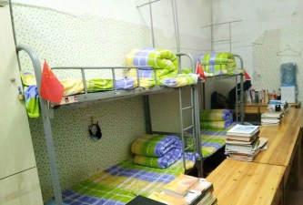 2、老校区宿舍为上下铺,宿舍带桌子凳子,有电风扇没空调,有独立卫生间,有饮水机,楼道里有洗衣机支持微信支付。
