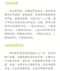 国家励志奖学金:标准为每人每年5000元,二年级以上优秀家庭经济困难学生。