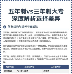 招生对象不同、教学计划不同、学习氛围不同、社会认知度不同。五年制大专的招生对象是初中生,毕业证书会注明学制是五年,而三年制大专的招生对象则是高中毕业生和三校生,其中三校生是指中专、职高和技校的学生,毕业证书上也会注明是三年的学制。