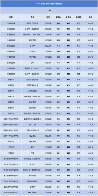 在时尚传播专业方面,上海杉达学院在上海市内的排名为第一名,最低分为436分。