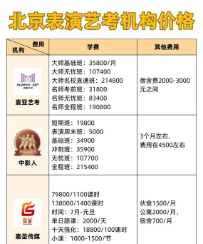 表演培训机构其实有很多,也会分不同的方向,有的是职业教育培训,有的是针对艺术生艺考加试的培训,还有的主要是以兴趣爱好或者是初学表演所做的培训,因此具体的价格也不是固定的。要看用户的需要来定。
